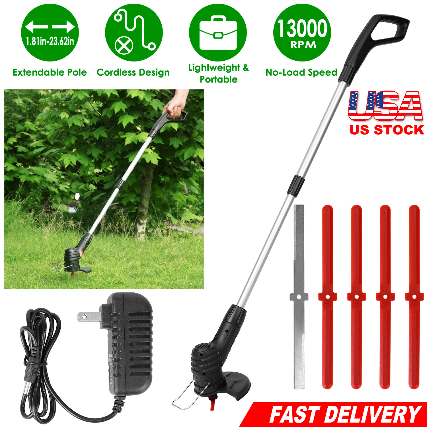 Electric Cordless Grass Trimmer Rechargeable Grass String Trimmer Garden Weed Cutter Lawn Mower 2A Battery with 5 Blades