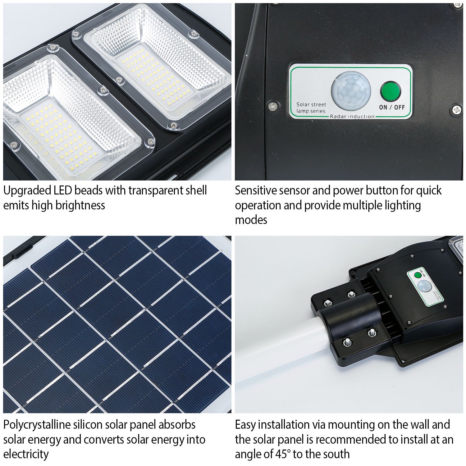 Lighting Modes Support: Radar Mode At Night; 3Hrs Timing On Radar Mode At Night ;5Hrs Timing On Radar Mode At Night; 3Hrs Timing On In The First Section, Then Turns Into 9Hrs Radar Mode At Night; Half Brightness/Full Brightness Options At Night; 12Hrs Constant On Timing At Night; 5Hrs Timing On In The First Section, Then Turns Into 7Hrs Radar Mode At Night
