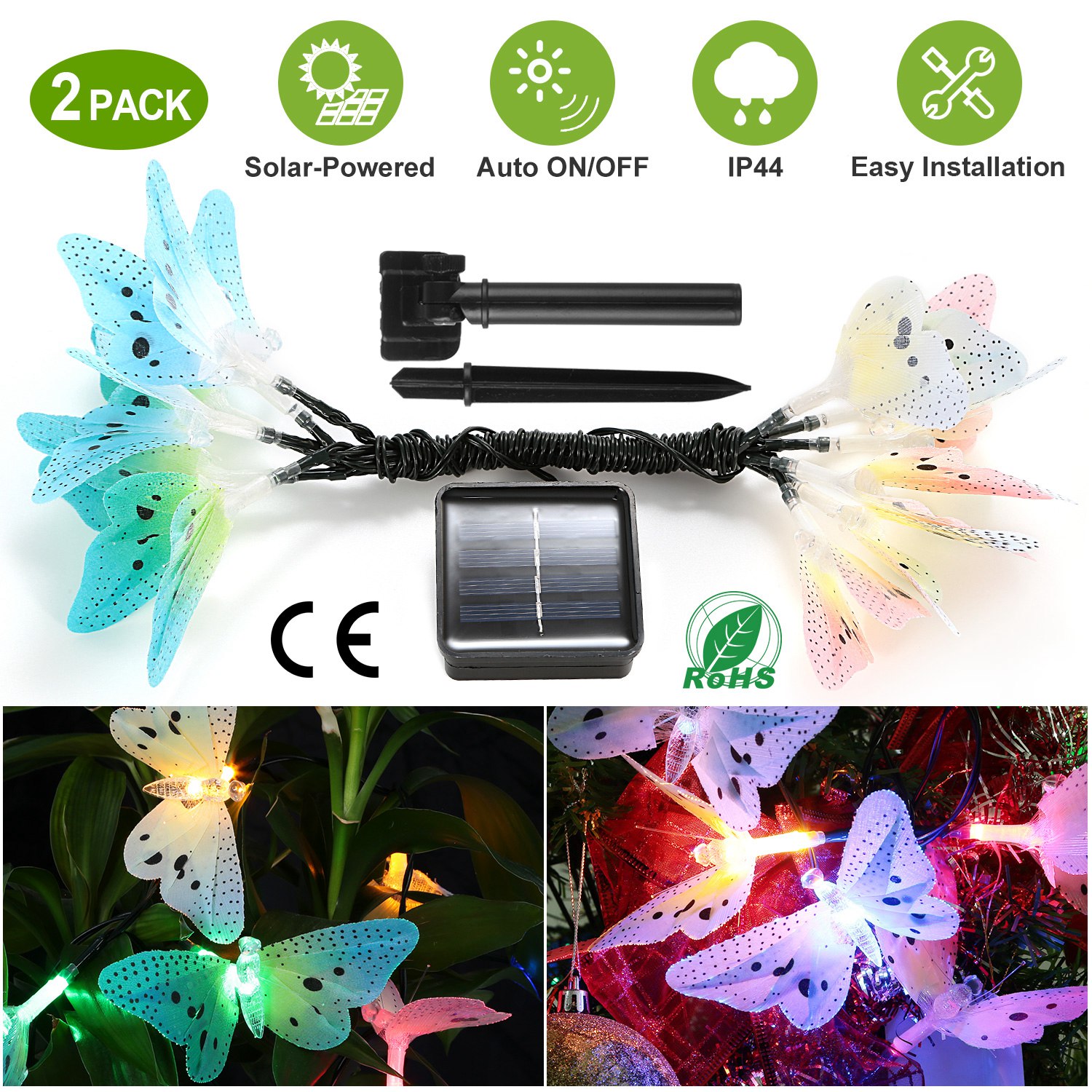 Home > 2 Pack Solar Powered String Lights 3.8m/12.48Ft 12 LEDs Butterfly Lights IP44 Waterproof Multi-Color Lights for Christmas Decorative Garden Fence Pati