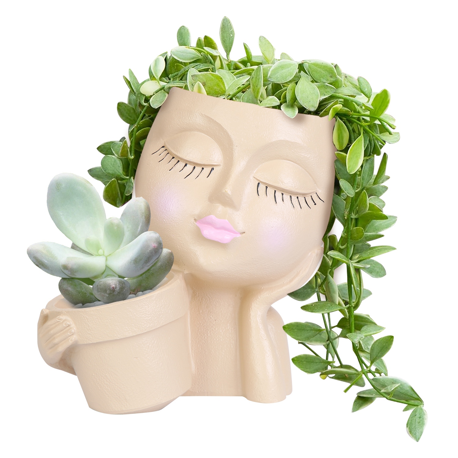 Home > Girl Face Planter Pot Dual Opening Flower Pot With Drainage Hole Lady Head Resin Plant Pot For Succulent Cactus Indoor Outdoor