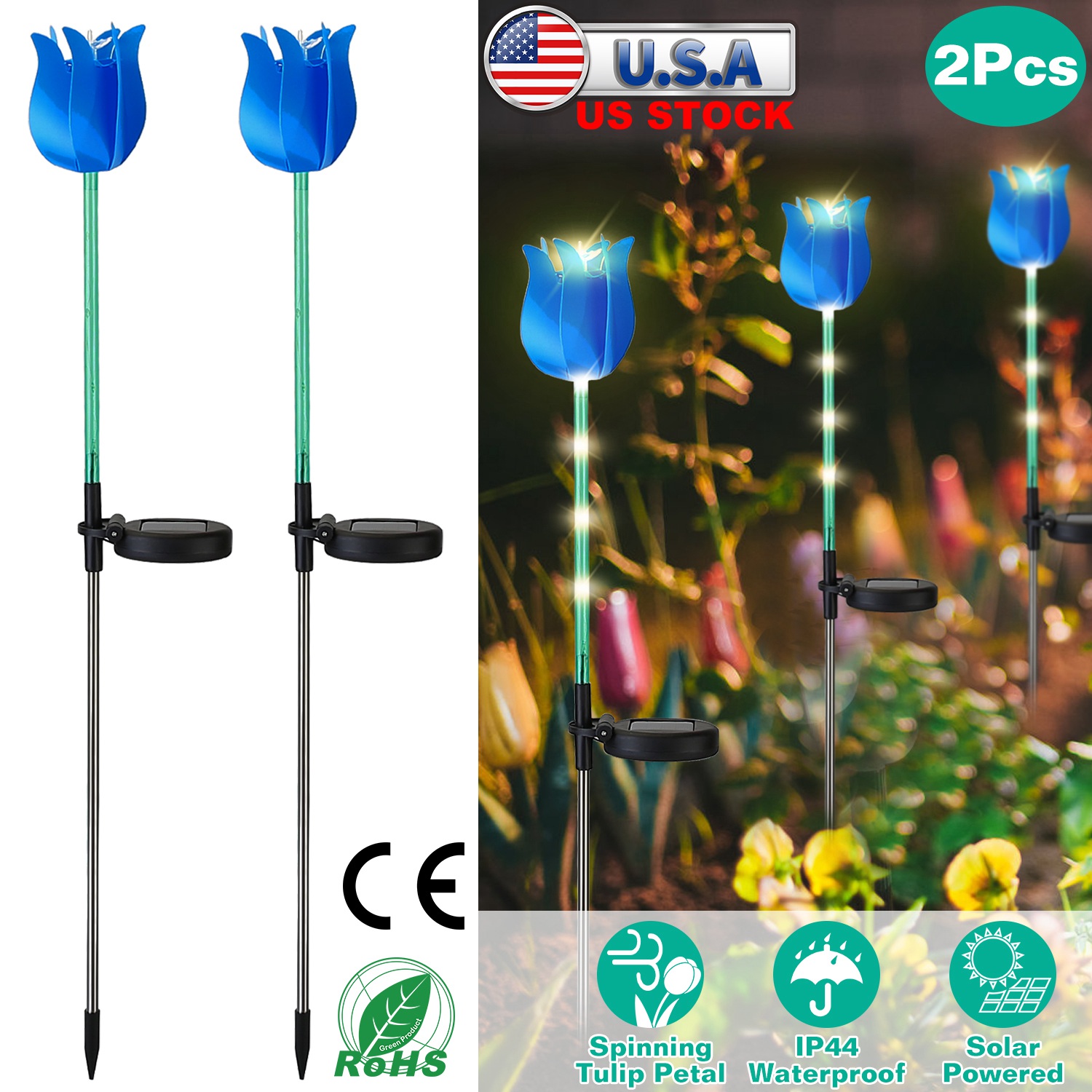 2Pcs Solar Powered Tulip Garden Light Wind Mill Waterproof Landscape Stake Lamp Decorative Lawn Lights For Yard Driveway Walkway Patio
