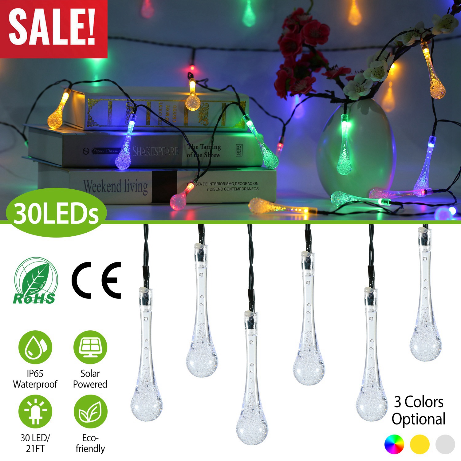 Home > Outdoor Solar String Lights 21 Feet 30 LEDs Water Drop Solar Powered Lights Waterproof Solar Fairy Lights Decorative Solar Powered Lights for Home Pat